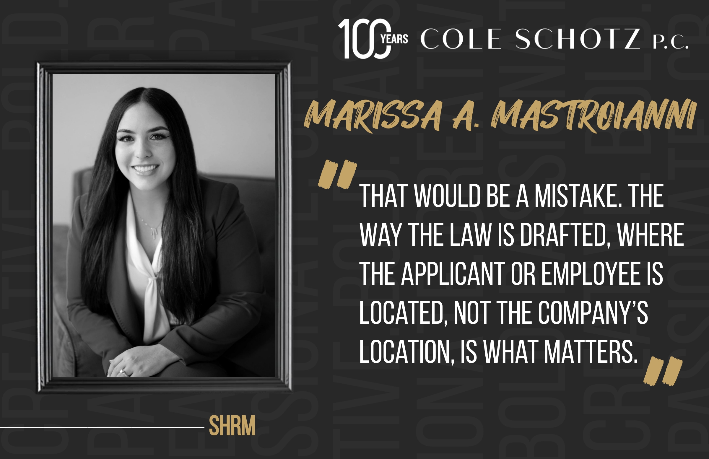 As the law continues to evolve on these matters, please note that this article is current as of date and time of publication and may not reflect subsequent developments. The content and interpretation of the issues addressed herein is subject to change. Cole Schotz P.C. disclaims any and all liability with respect to actions taken or not taken based on any or all of the contents of this publication to the fullest extent permitted by law. This is for general informational purposes and does not constitute legal advice or create an attorney-client relationship. Do not act or refrain from acting upon the information contained in this publication without obtaining legal, financial and tax advice. For further information, please do not hesitate to reach out to your firm contact or to any of the attorneys listed in this publication. No aspect of this advertisement has been approved by the highest court in any state.